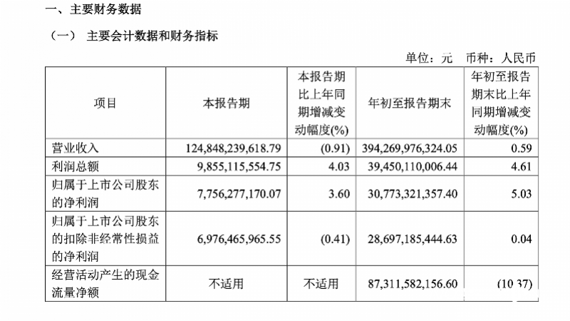 10月21日晚间,中国电信发布2025年三季报。公告称,第三季度营业收入1248亿元(人民币,下同),同比下降0.91%;归属于上市公司股东的净利润77.56亿元,同比增长3.6%。今年前三季度,公司实现营业收入约3942.7亿元,同比增长0.59%;实现归属于上市公司股东的净利润约307.73亿元,同比增长5.03%。