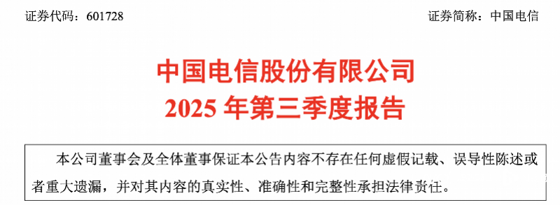 南都湾财社记者梳理发现,就在半年报时,中国电信2025年上半年营业收入为人民币2694亿元,同比增长1.3%,其中服务收入为人民币2491亿元,同比增长 1.2%。归属于上市公司股东的净利润为人民币230亿元,同比增长 5.5%,基本每股收益为人民币 0.25 元。资本开支为人民币342亿元。
