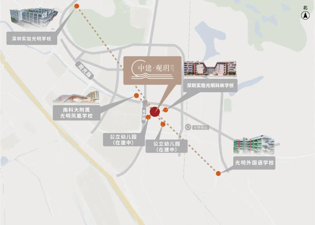 中建·观玥与今年9月已正式开学的深圳实验光明科林学校(九年一贯制)仅一路之隔。