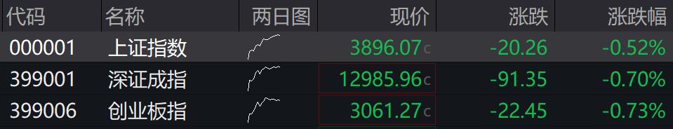 沪指跌0.52%,深成指跌0.7%,创业板指跌0.73%。