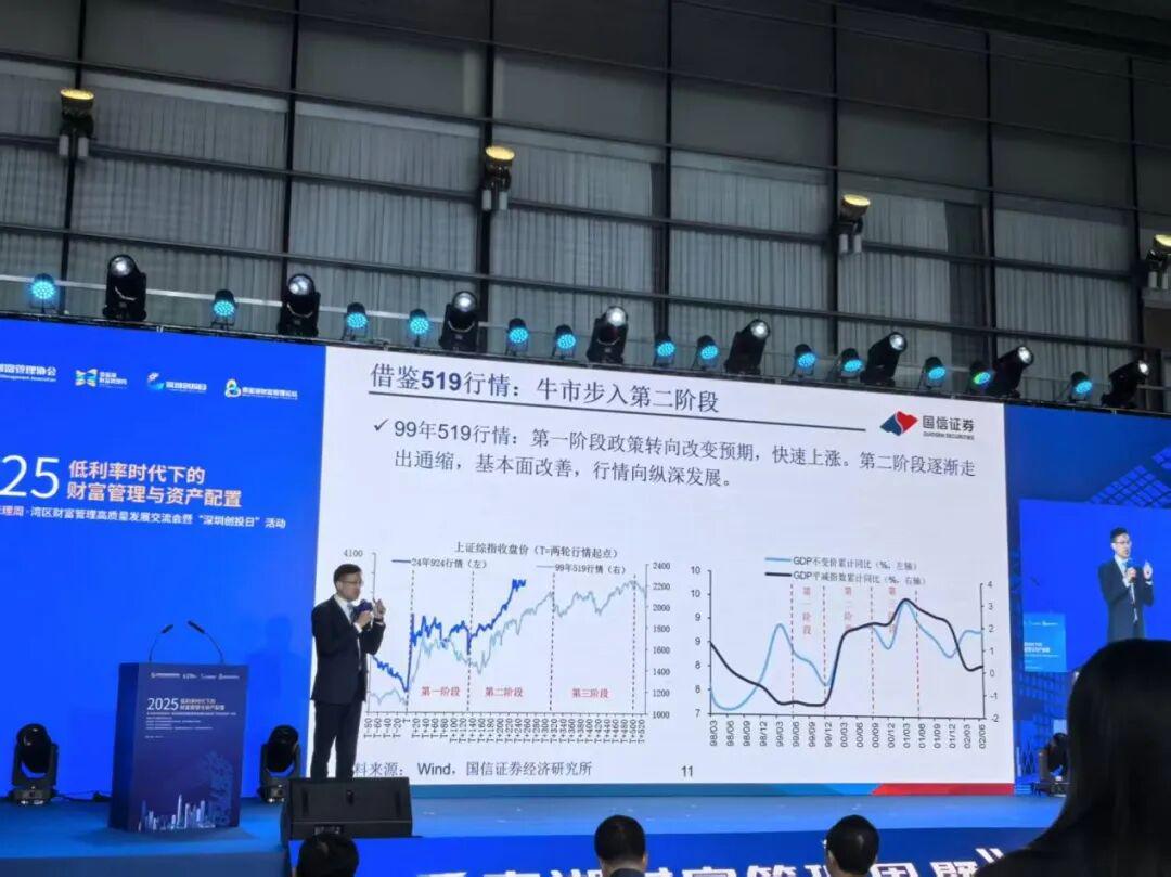 国信证券首席经济学家荀玉根在会上发表了鲜明观点,认为此轮牛市开始于2024年9月24日,宏观背景和1999年的“519牛市”比较像,政策发力治理通缩。