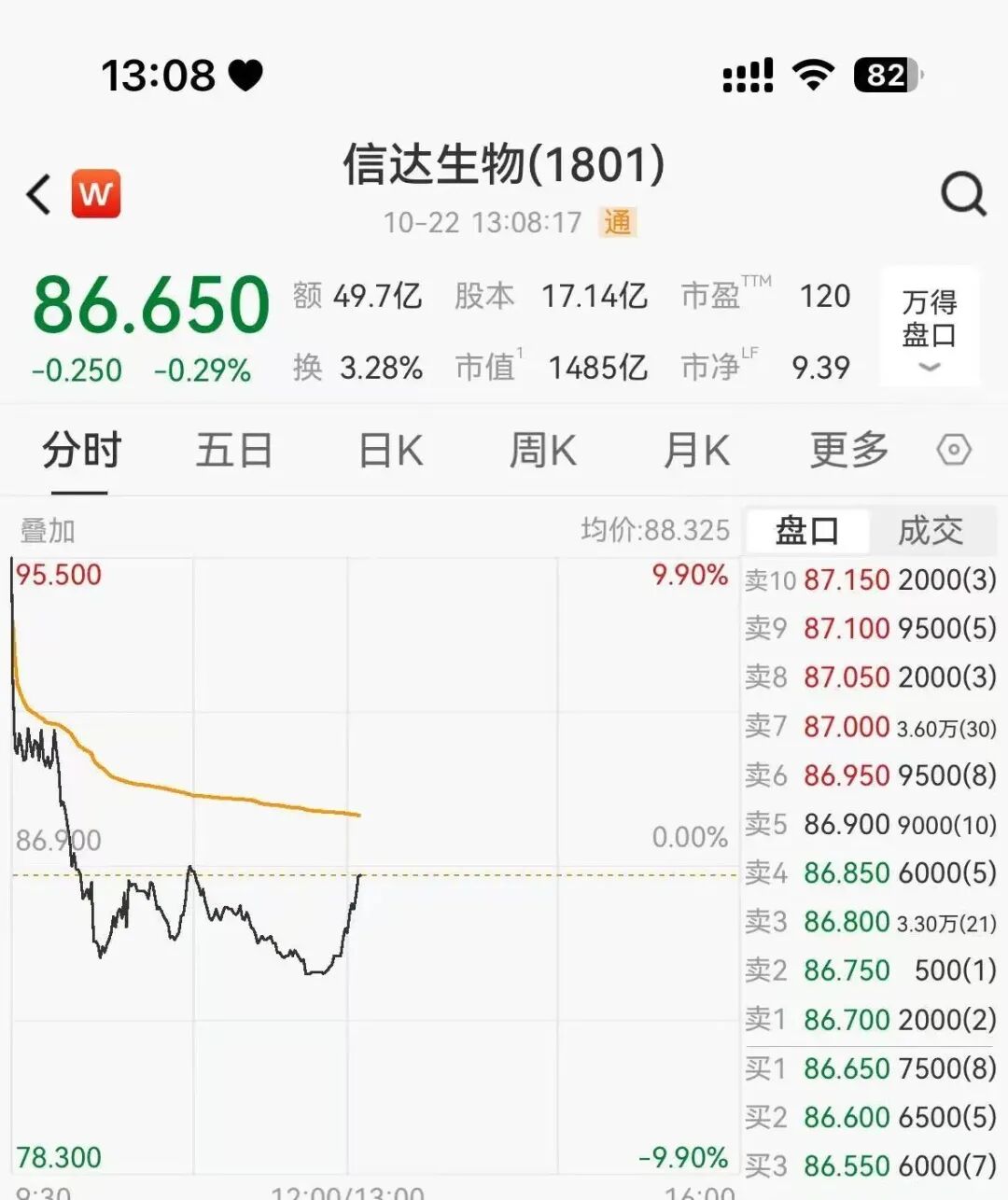 该消息发布后,信达生物早盘股价上涨6.49%,报95.5港元,但随后股价回落,截至发稿跌0.29%。
