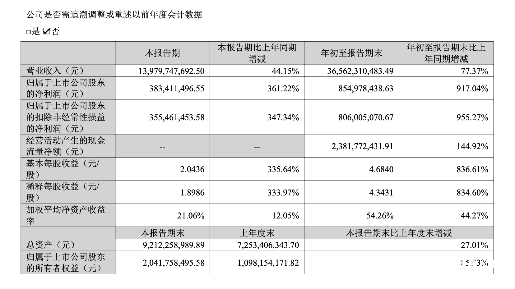 除了营收上涨推动净利润上涨外,根据财报,今年前三季度,其来自其他收益的收入同比上涨了146.38%至9919.95万元,这部分收入增加主要是源于政府补助增加;投资收益同比上涨1421831.69%至94.90万元,这部分收入增加主要是理财收益增加;营业外收入同比增长214.29%至2518.63万元,主要是因对外部单位违反公司合作条款的处理收入增加。