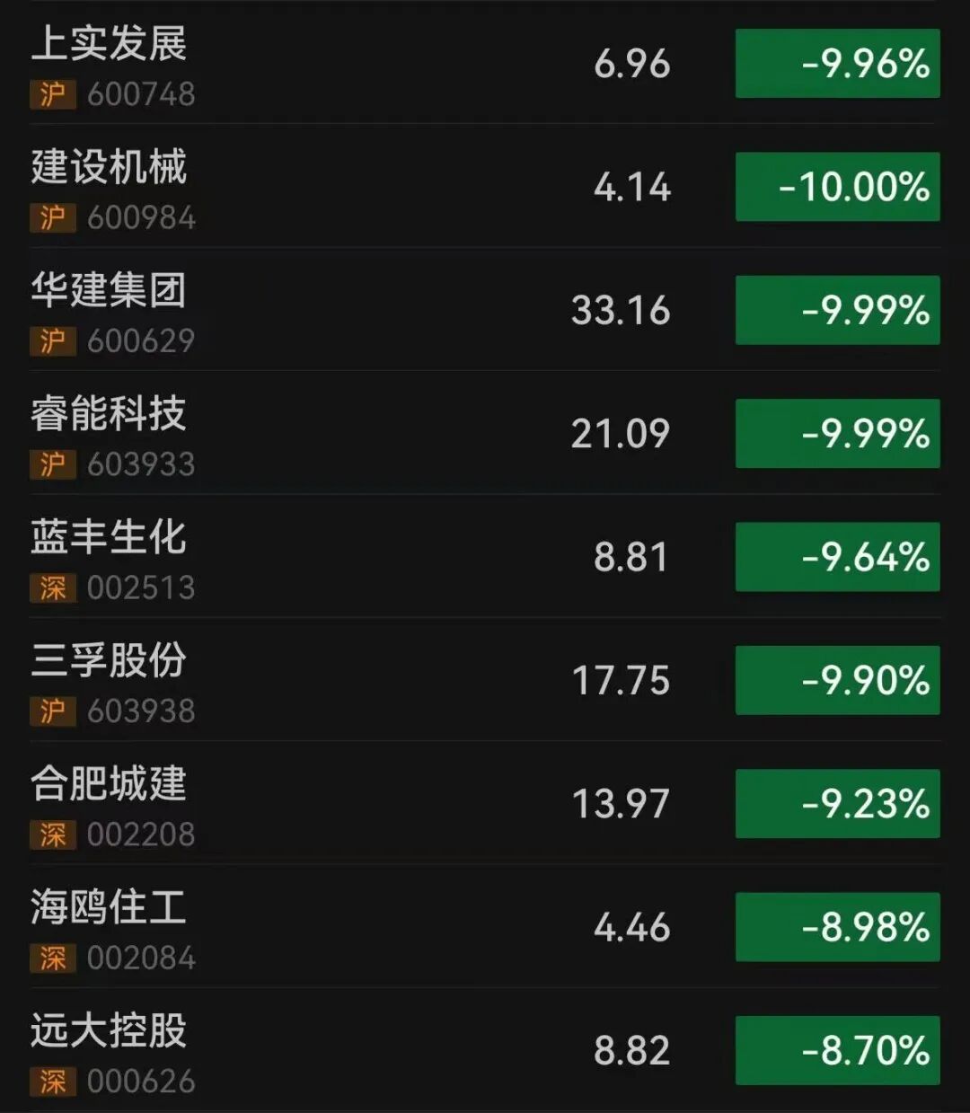 10月23日午后,高位人气股持续调整,上实发展、建设机械双双跌停,此前,华建集团、睿能科技已跌停;蓝丰生化、三孚股份、合肥城建跌超9%,海鸥住工、远大控股等跟跌。