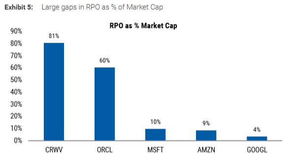 (RPO占Coreweave和甲骨文市值的比例分别高达81%和60%)