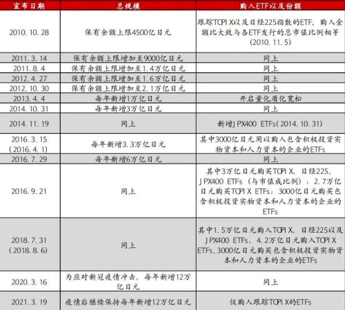 最开始,日本央行只计划每年定投4500亿日元,希望通过直接下场购买股票ETF为市场托底;并将注入的流动性从股市传导至更广泛的金融市场和实体经济部门。