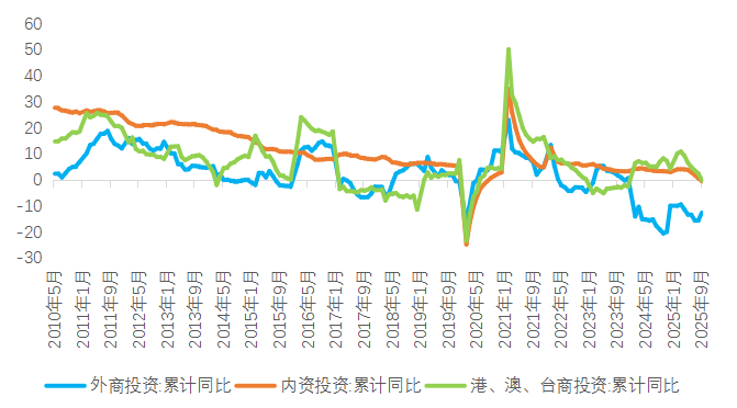 值得注意的是,上述趋势变化之间似乎存在一定的关联,而外商投资下降可能是其中重要的牵引力量之一。例如,外商投资在我国东部地区较为集中,东部地区依托高素质人才集聚、数字化基础设施完善、产业集群发达等优势,对外资吸引力持续增强。据统计,2024年,东部地区实际使用外资金额为7079亿元,占全国实际使用外资总额的85.7%;江苏、上海、浙江、广东连续多年居全国前四位;全国超九成的百亿美元级外资项目落户东部地区。考虑到东部地区在外商投资中占据重要地位,且两者之间的相关系数接近0.8,外商投资的减少显然会直接影响东部地区的投资规模。再比如,民营企业在外资企业供应链中占据重要地位,外商投资降低和订单减少,会导致其上下游众多民营企业的订单量下降,甚至带动零部件供应商企业被动跟随迁徙海外,从而影响民营企业在国内的投资意愿和投资规模。粗略的统计分析表明,外商投资减少与民间投资下降之间存在较强的相关性,相关系数约0.65-0.7。