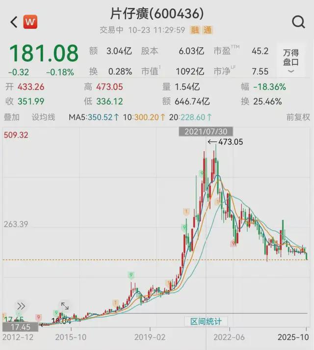 2025年三季报披露后的首个交易日,片仔癀股价低开5.78%,收盘时仍跌去4.71%,每股报187.09元。
