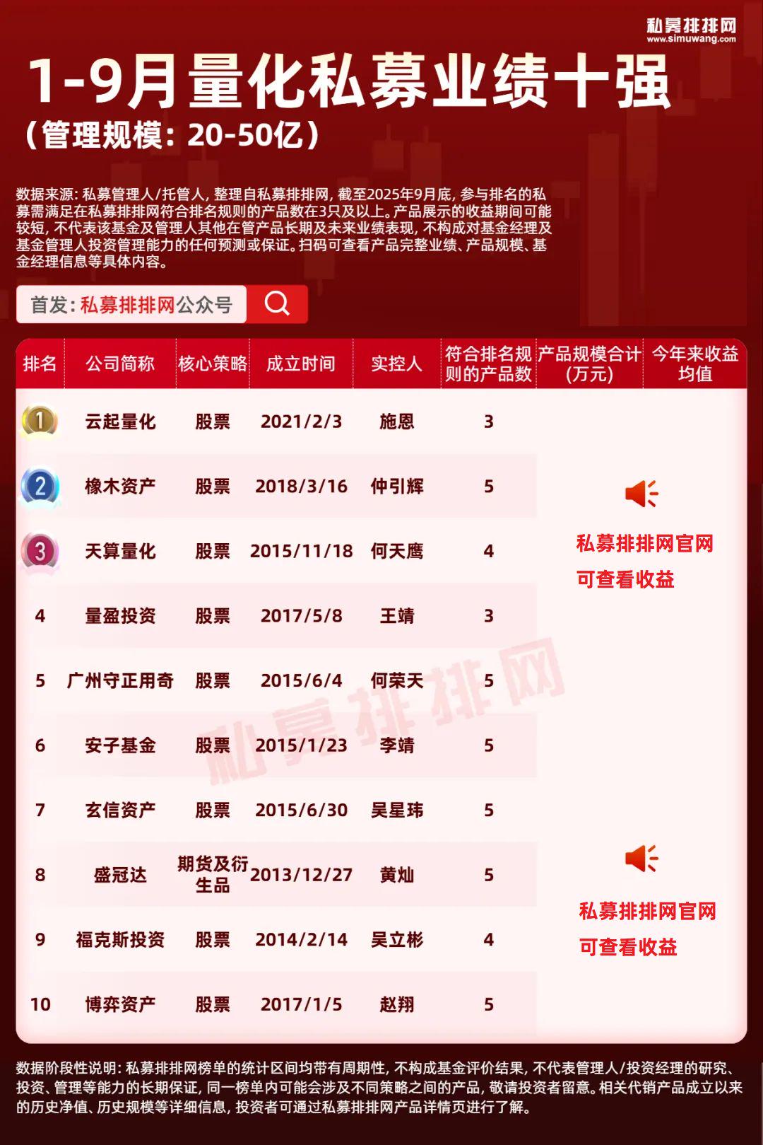 20-50亿:云起量化、橡木资产继续蝉联前二!