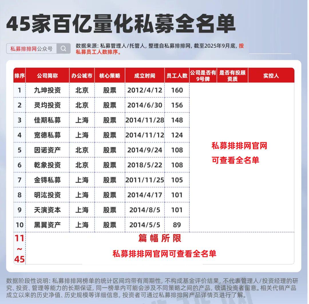 值得注意的是,今年来私募出海成为比较热门的布局方向,在这45家百亿量化私募中,已有九坤投资、宁波幻方量化、龙旗科技、进化论资产等17家拥有香港9号牌照,当前香港9号牌照已成为内地私募机构国际化的“黄金门票”。