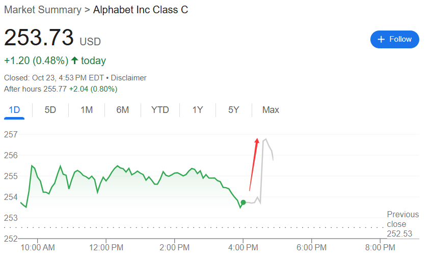 (谷歌母公司Alphabet盘后短线快速上行近1%)