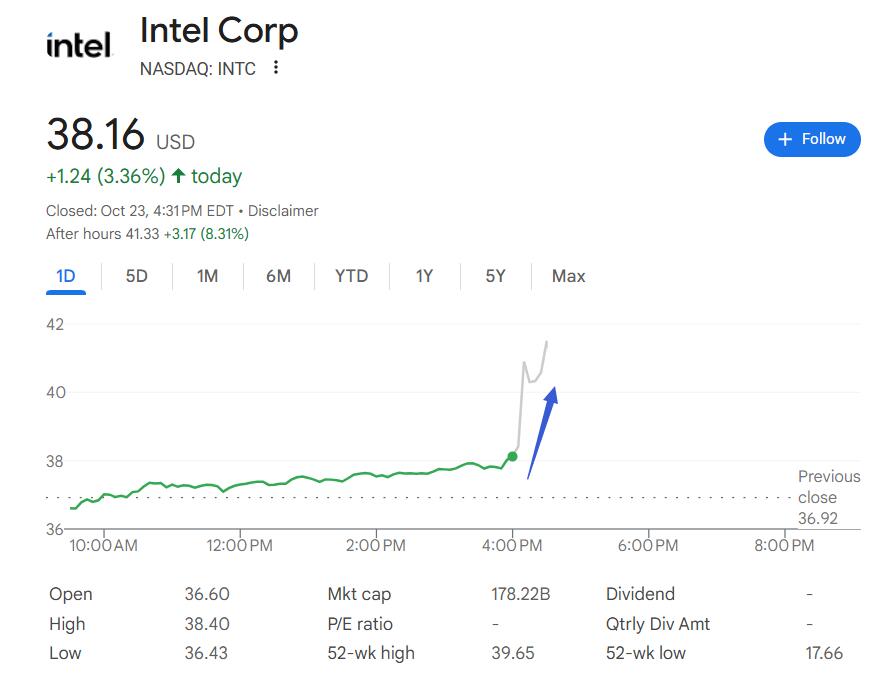 Running Point Capital的首席投资官Michael Schulman认为,这约150亿美元的新战略融资支撑了英特尔的资产负债表。这些融资,加之三季度英特尔的毛利率明显提高、成本控制、AI PC的热潮、强于预期的指引共同推动英特尔股价盘后走高。