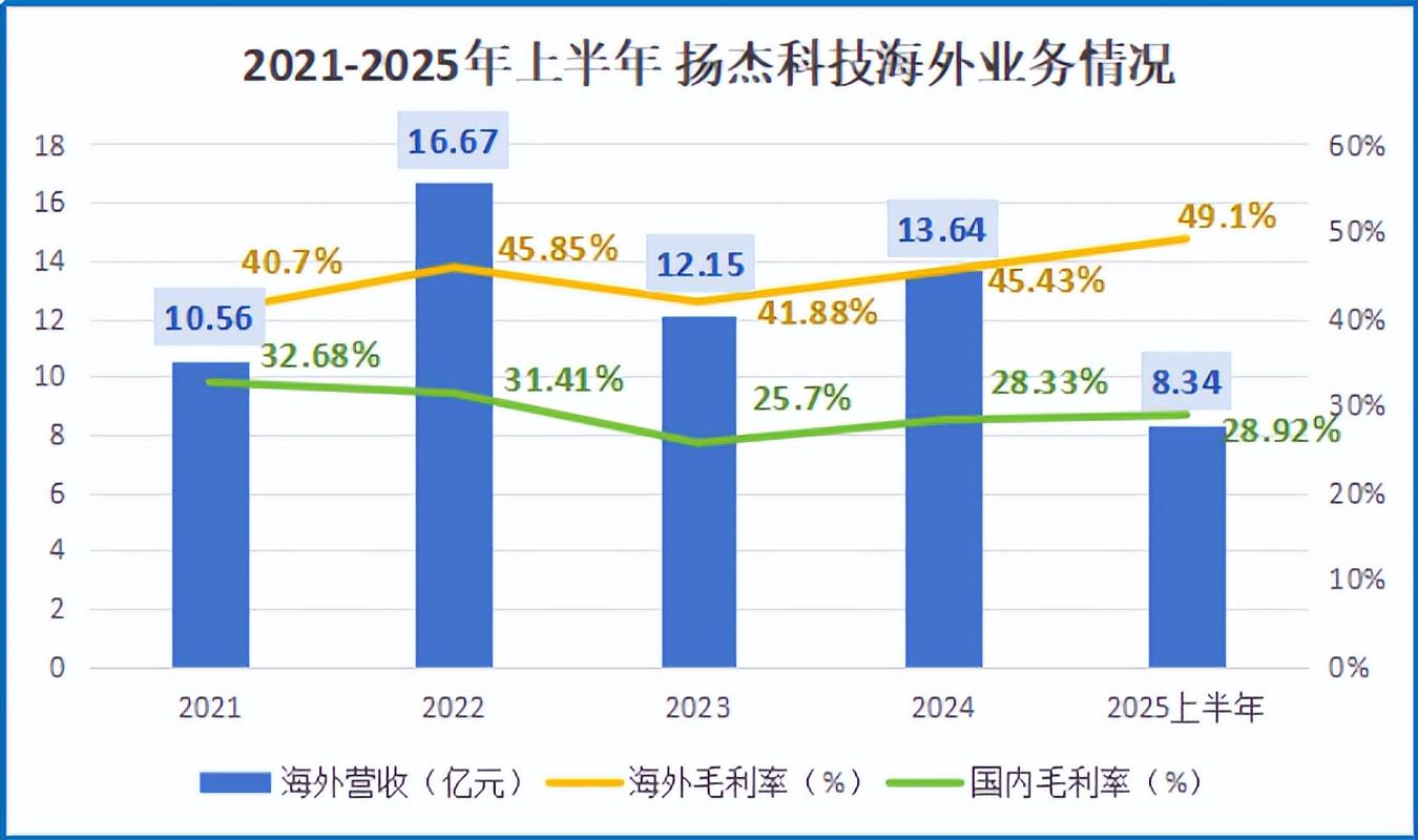 这直接带动了同时期扬杰科技的海外营收增长,同比增长34.95%,达到8.34亿元。