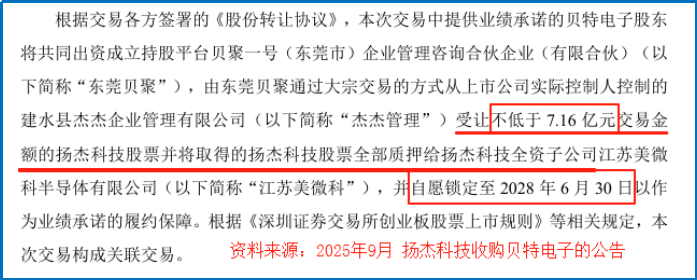 贝特电子需要拿出7.16亿元真金白银用于质押。若贝特电子未完成业绩,这些抵押将用于弥补扬杰科技损失。