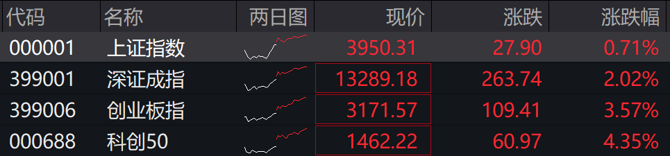 10月24日,A股三大指数集体收涨,截至收盘,上证指数涨0.71%,深证成指涨2.02%,创业板指涨3.57%。科创50大涨4.35%。
