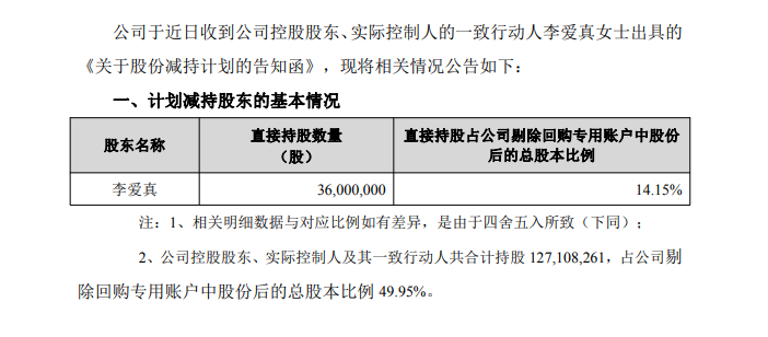 老母亲要减持?
