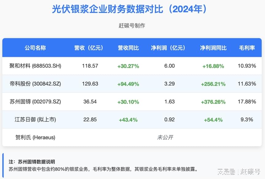 抛开理论推演,当前光伏银浆企业的实际经营处境尤为值得关注。数据显示,行业前五企业已占据73%市场份额,行业集中度较高。但除外资企业贺利氏外,国内公司毛利率普遍处于9%–12%区间,整体盈利承压。例如,苏州固锝虽整体毛利率为17.88%,但其中包含高毛利半导体业务贡献,纯银浆业务盈利能力估计仍处平均水平。
