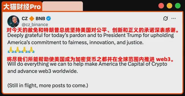 当然,白宫的声明就“更高大上”一点,“特朗普行使了宪法权利,赦免了拜登政府在加密战争中被起诉的赵先生”。