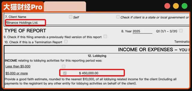 9月份的时候,一份游说报告显示,币安花了45万美元,在一家游说公司下单,主要游说对象就是白宫和美国财政部。