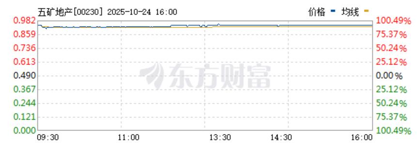 停牌近一个月后,五矿地产复牌迎来暴涨行情。10月24日,五矿地产高开91.67%,截至收盘,每股报0.94港元,大涨91.84%。