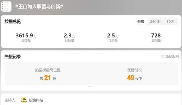 10月21日,经过一夜的发酵,王自如入职雷鸟相关话题在多家媒体的报道、一众大V的参与讨论上,径直冲上微博热搜,吃瓜群众十分好奇,他真的要去雷鸟?没有董明珠给他开工资条的日子不好过啊,还得是要找个班上?