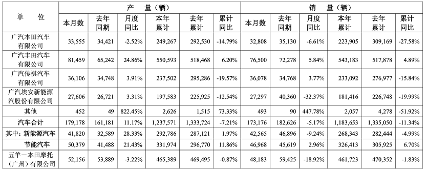 近年来,广汽集团的汽车销量一直处于下滑趋势中。