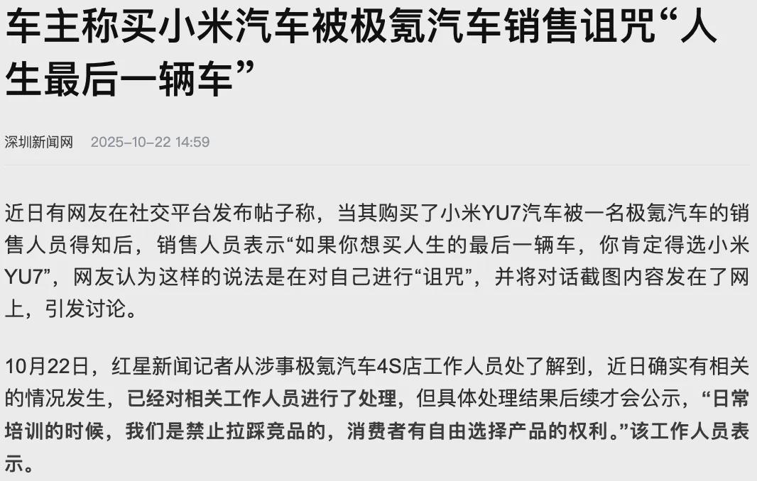 人家极氪4S店销售对买车的人,搞竞品拉踩: