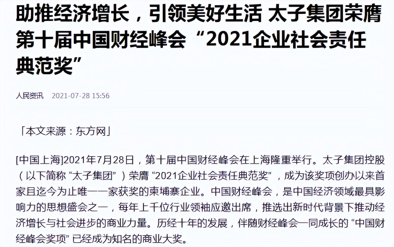 他甚至在中国的影响力也不小,他的太子集团多次跟国内的一些机构交流合作,还曾连续两届,拿下了财经峰会的企业社会责任奖。