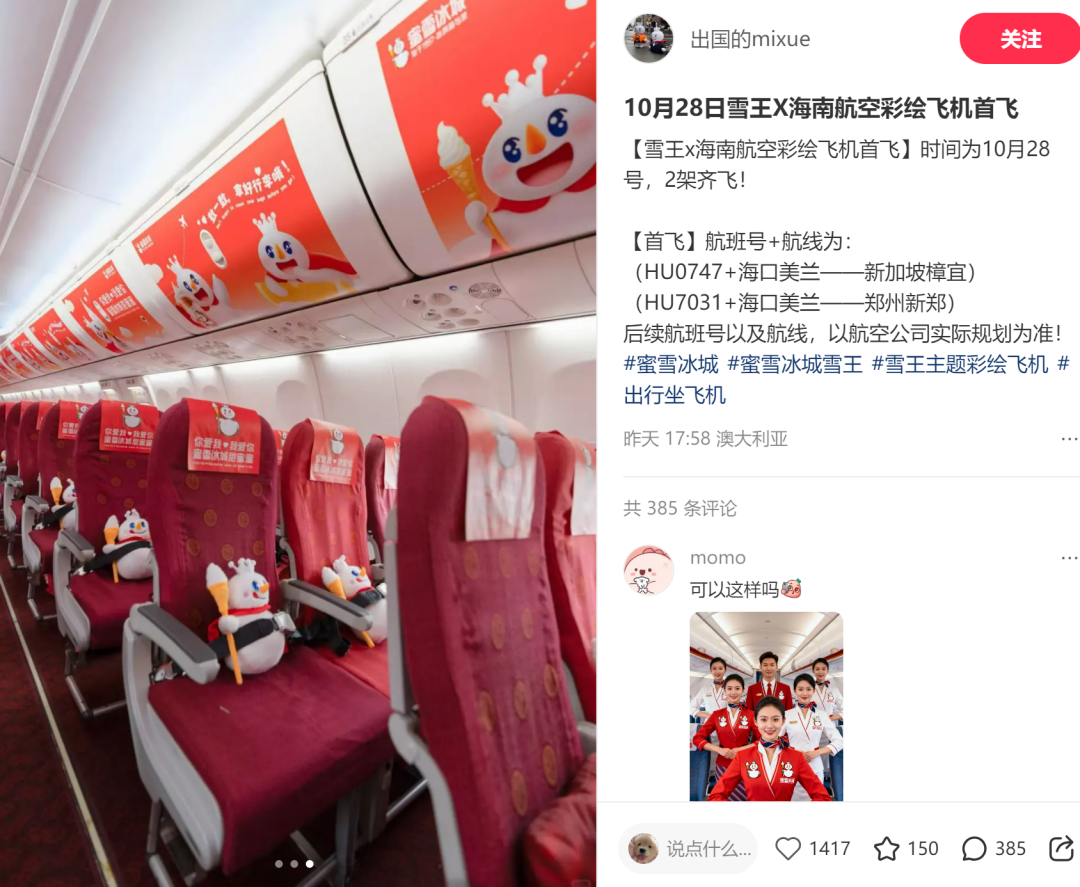 03.蜜雪冰城联合海航推出“雪王飞机”