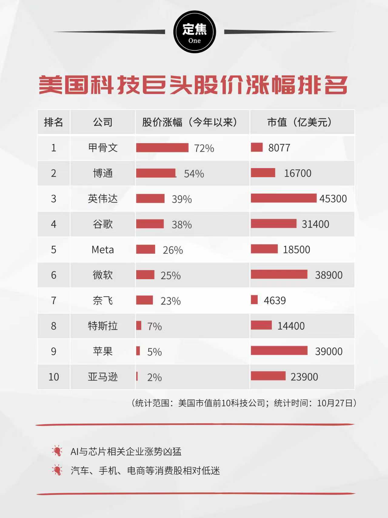 我们以“股价涨幅+财务硬实力”为双标尺,拆解中美两国市值排名前10的科技巨头: