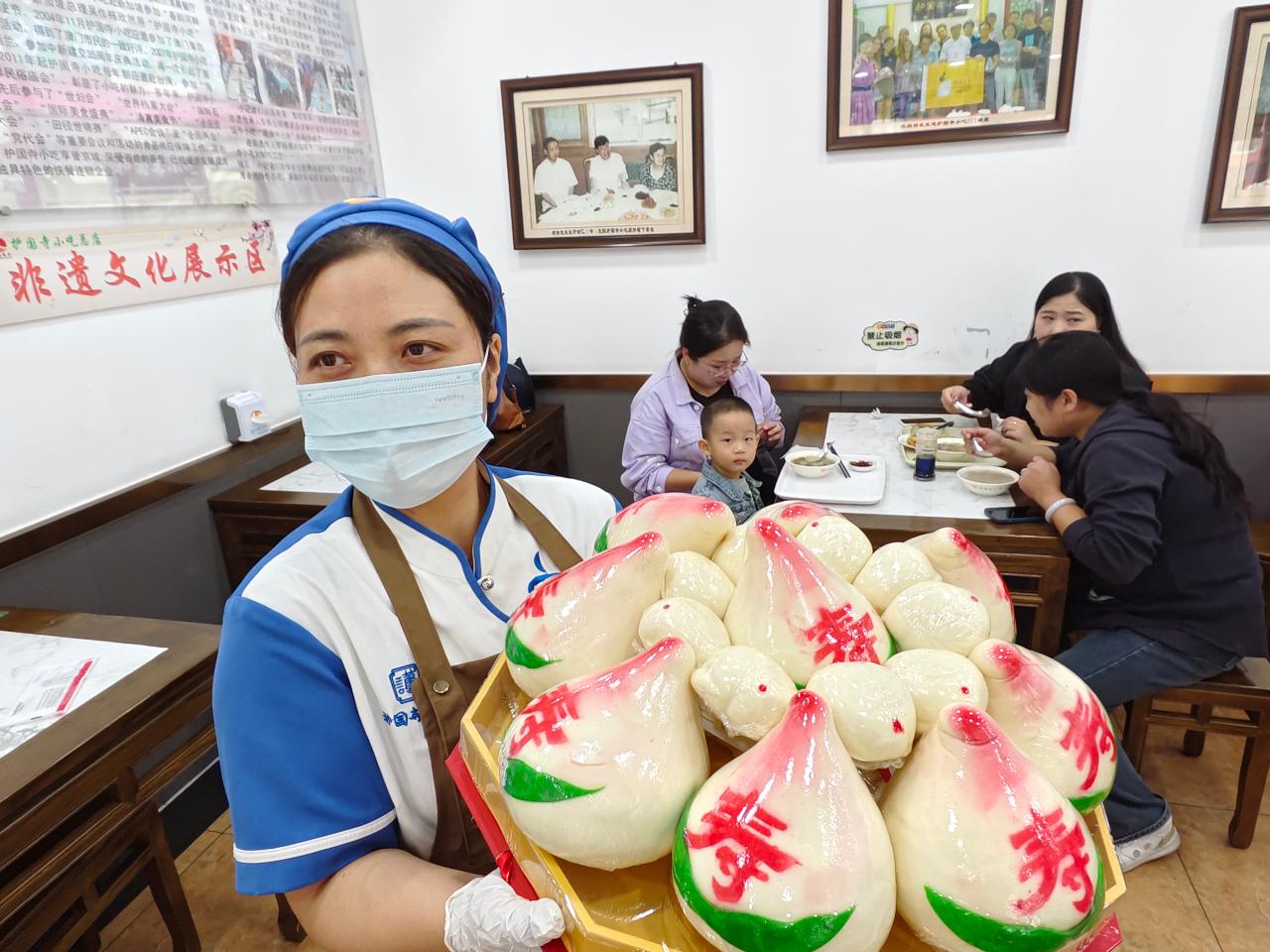 护国寺小吃总店经理张猛说:“自9月初起,我们就陆续接到重阳节订单,尤其是寿桃这类需提前准备的产品。今年除了经典的寿桃和重阳糕外,我们还新推出了重阳饼。”