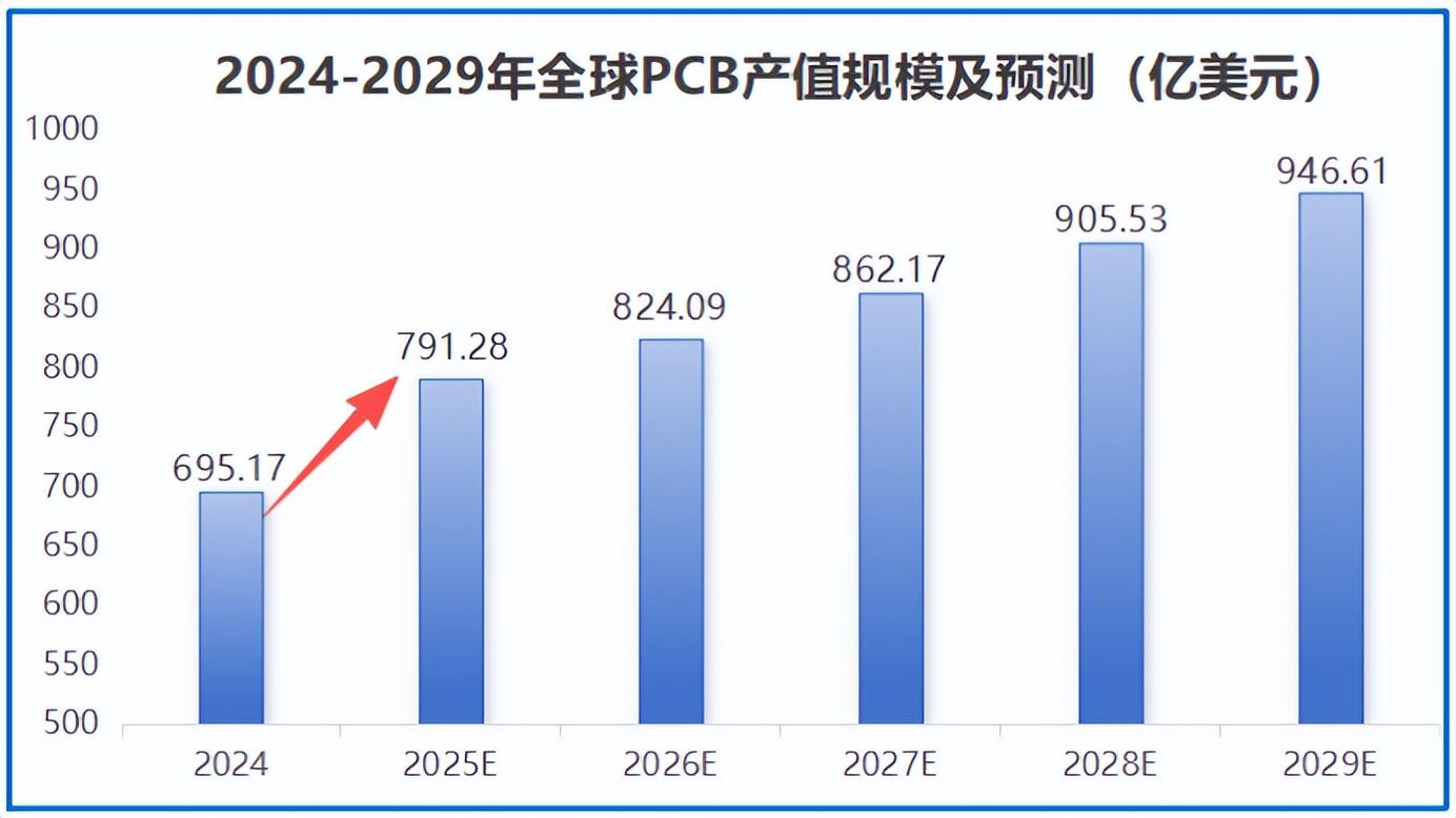 行业预测,2025年全球PCB市场产值有望攀升至790亿美元。