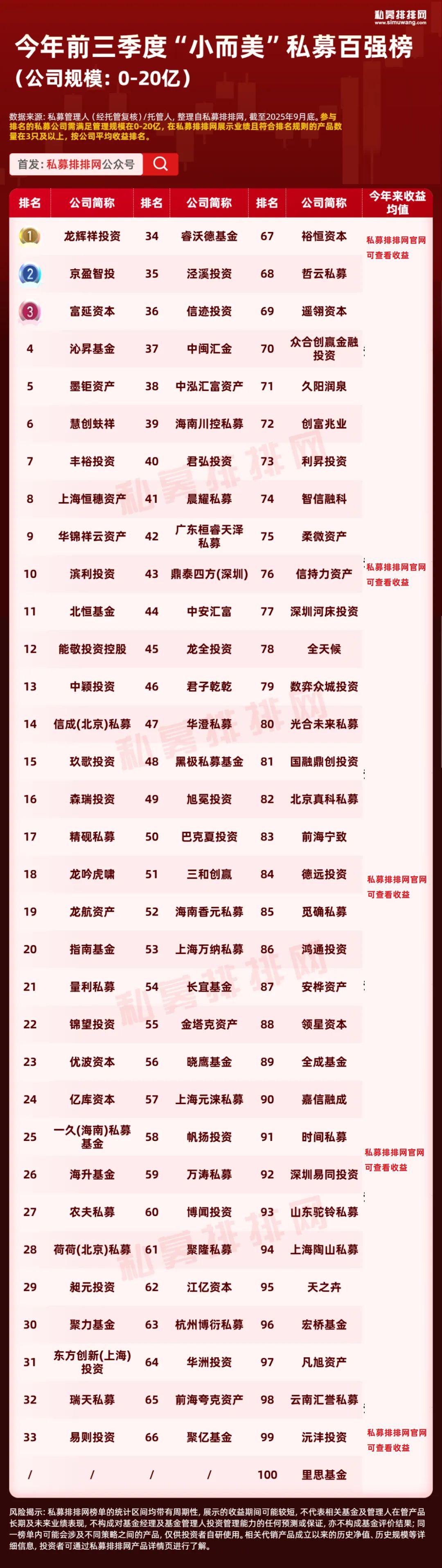 “小而美”私募百强榜:龙辉祥投资领先!