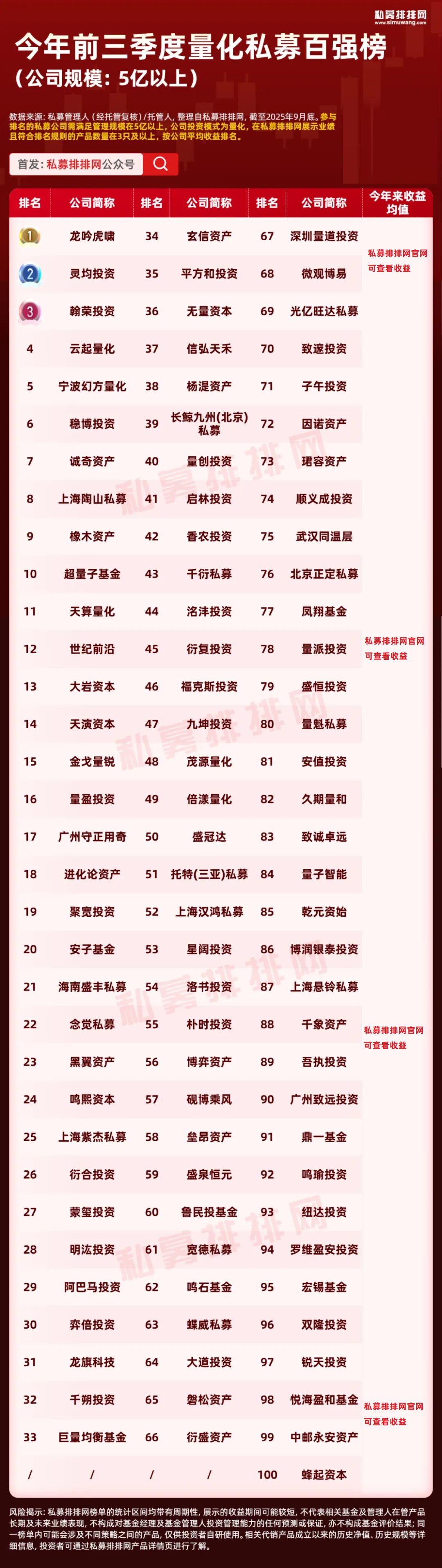 量化私募百强榜:云起量化居前!百亿私募全上榜!世纪前沿成500亿新贵!
