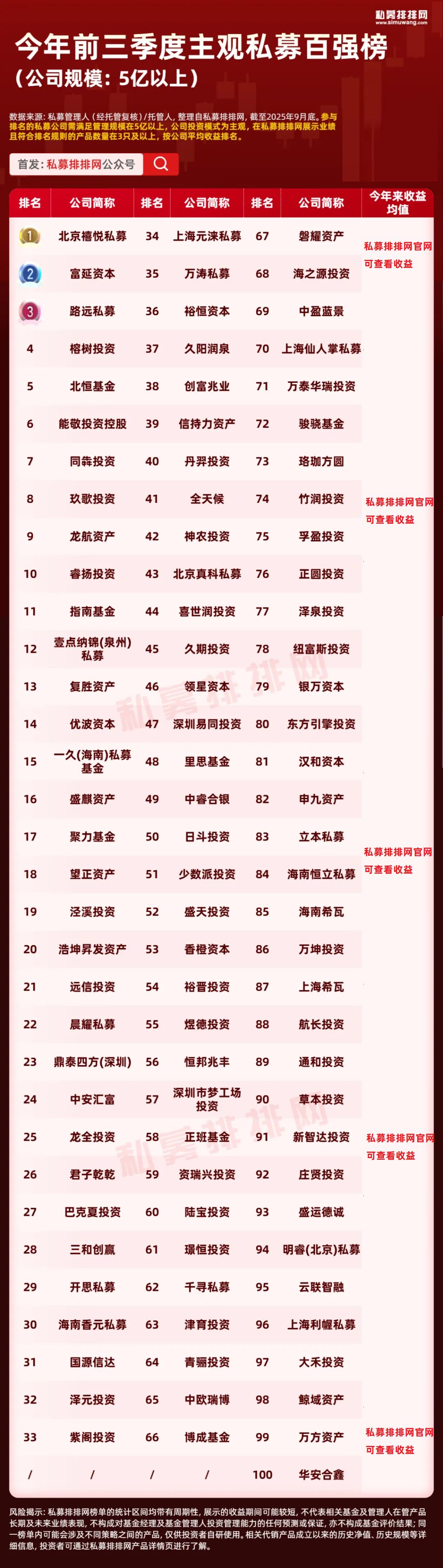主观私募百强榜:路远跻身前3!日斗投资、中欧瑞博等7家百亿私募上榜!