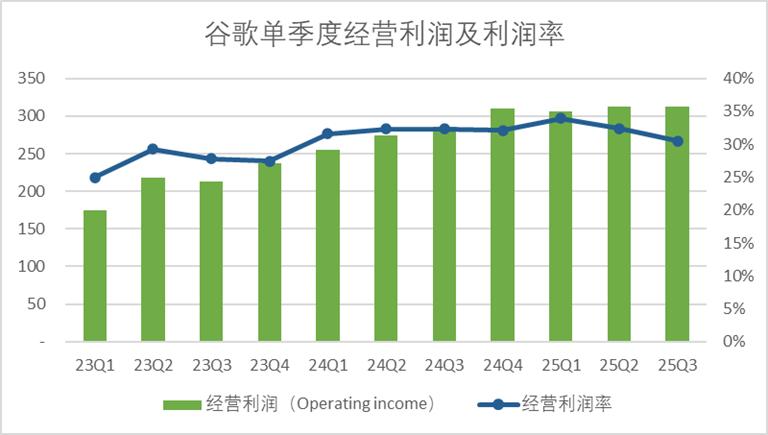 如果内部交易过多,会影响集团整体的利润率水平,三季度Alphabet整体的毛利率达到了59.6%,环比同比没有明显变化,集团整体的经营利润率也维持在了30.1%,虽然同比下降了180bp,但主要还是因为费用一次性支出,整体的利润水平变化不大。