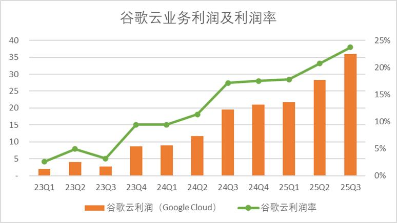 更夸张的是,受益于AI蓬勃发展,谷歌云的利润率也在随着营收规模节节高升,三季度谷歌云的单季度利润率达到了23.7%,几乎把硬件服务业务做成了软件的利润。