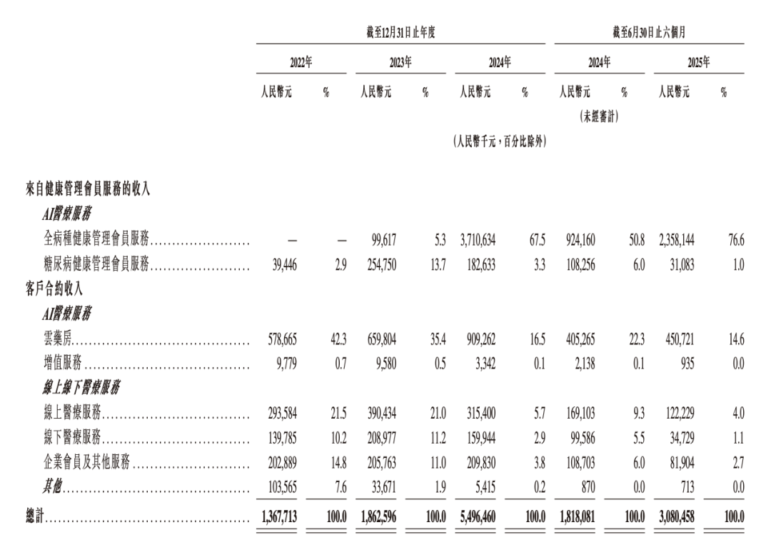不使用AI的线上线下医疗服务业务的同期毛利率相对较高,但该业务在2025年上半年的收入占比不到8%,而且业务规模在报告期内还出现了不同程度的缩水。因此,尽管线上线下医疗服务业务的盈利能力尚可,但受近两年收入缩水的影响,仍对公司整体业绩构成拖累。