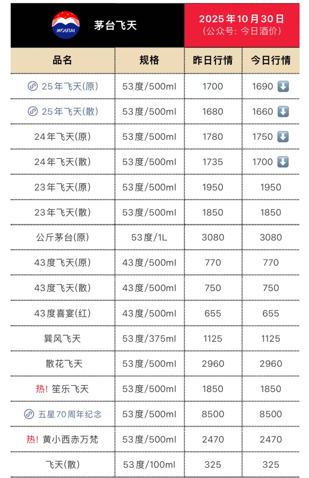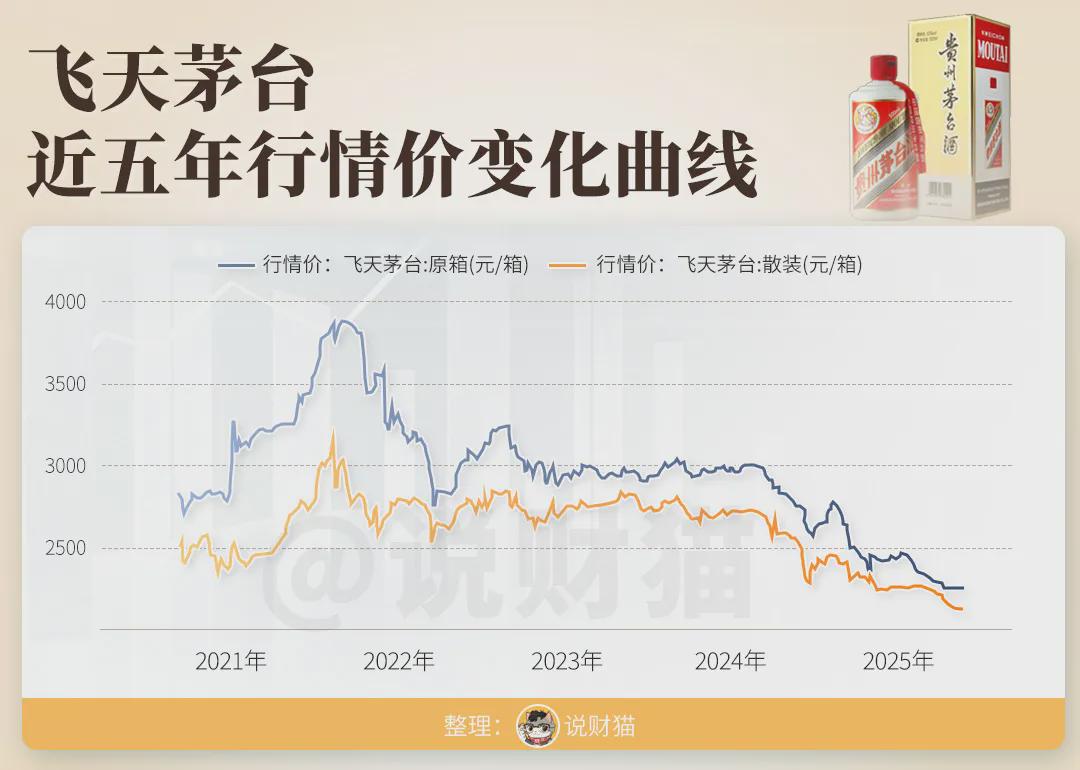 曾经卖大几千的飞天茅台,最新市场价已经跌破1700。