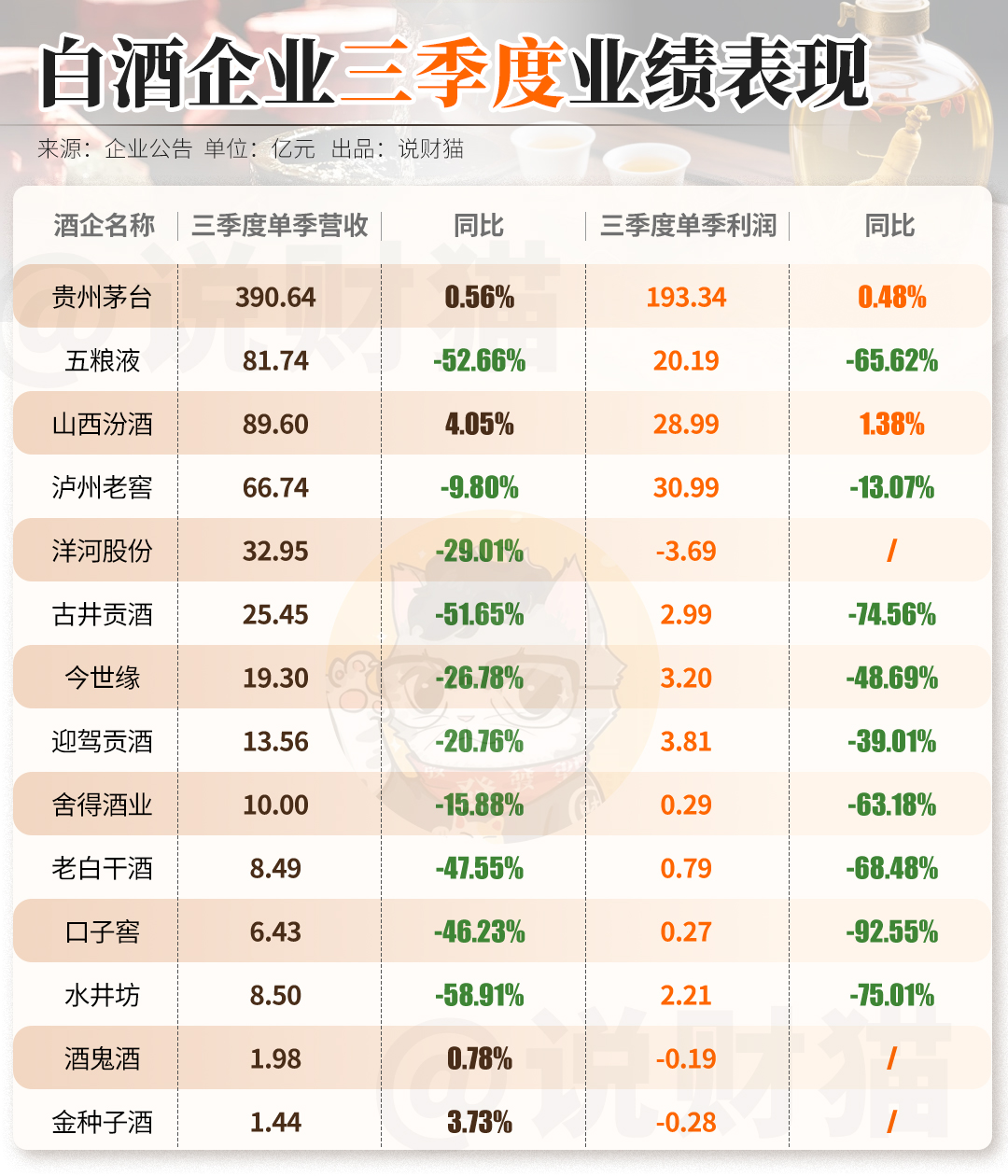 但白酒企业业绩,还是让猫姐跌破了眼镜!