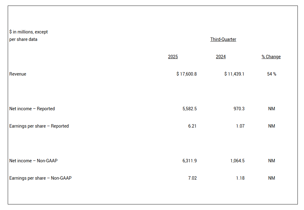 10月30日,美国礼来公司(LLY.US)发布2025年三季报。第三季度营收达到176亿美元,同比增长54%,超出行业预期;净利润达到55.83亿美元,而去年同期为9.7亿美元;每股收益6.21美元,按非公认会计准则(Non-GAAP)计算经调整每股收益7.02美元。