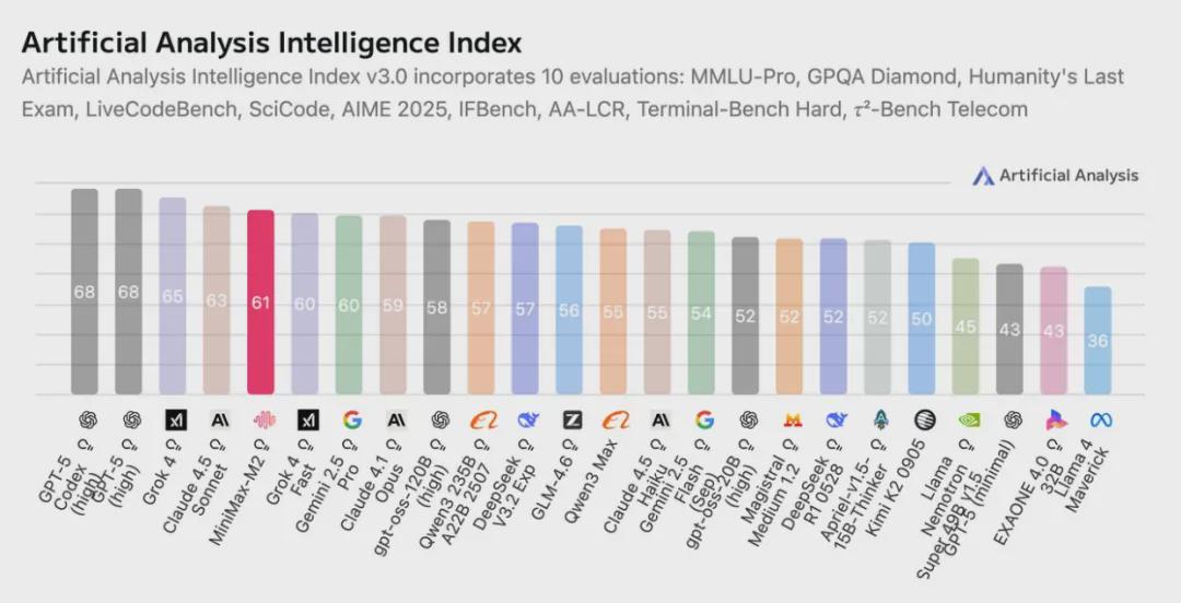 作为一款面向Agent和代码场景的大模型,M2一经上线,便在全球权威测评榜单Artificial Analysis (AA)中取得全球第五、开源第一的成绩;在LMArena Web Dev 全球第四,超过了Claude 4.5;智能水平接近GPT-5(high)与Claude Sonnet 4.5等顶级模型,成为迄今为止针对智能代理与工具调用任务表现非常的开源模型。