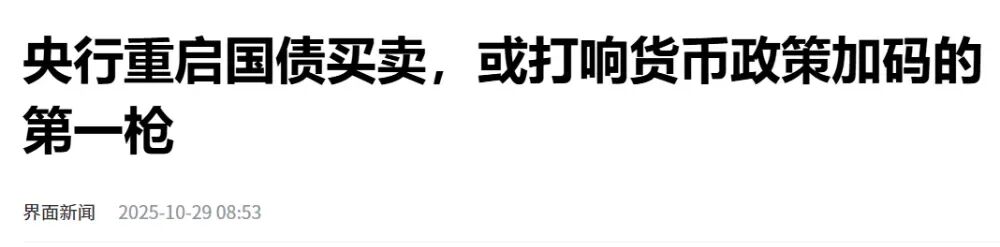 10月27日, 央行领导 在2025金融街论坛年会作主题演讲时提及“目前债市整体运行良好,我们将恢复公开市场国债买卖操作”。