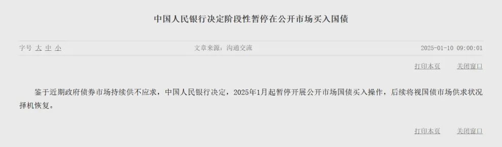 所以,央行暂停了公开市场国债买卖的操作。