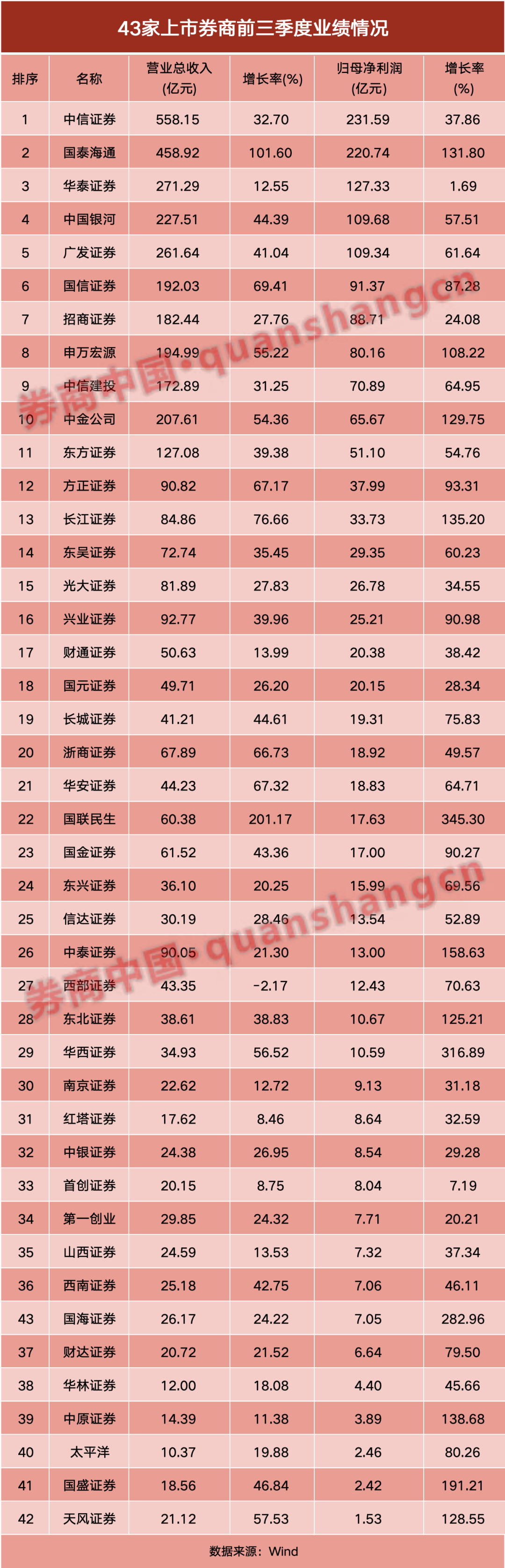 43家上市券商三季报已悉数披露。