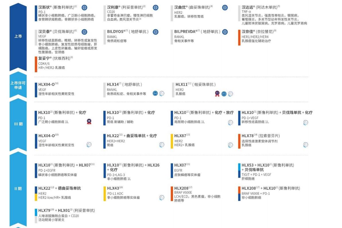 复宏汉霖已上市及部分后期在研管线(统计截止2025年9月初)