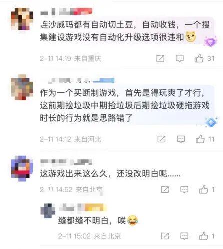 玩家对吉比特的吐槽也不少,就比如《重装前哨》因操作烦琐、剧情冗长被玩家差评“缝都缝不明白”、“没有自动升级选型很违和”......