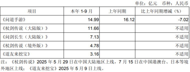 新上线的两个版本的《杖剑传说》游戏合计为前三季度贡献超16亿元流水,1月公测的《问剑长生(大陆版)》贡献超7亿元,《道友来挖宝》贡献收入超3亿元,今年上线的新游戏总计贡献了超26亿元的流水。