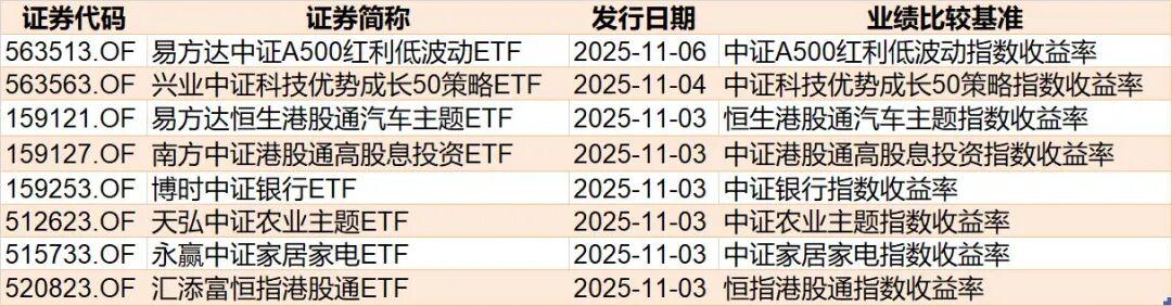 目前已有8只ETF披露下周发行,跟踪标的为家电、农业、银行、汽车主题等。