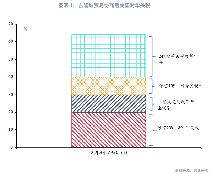值得注意的是,根据本次协商结果,未来1年内美国对我国的“对等关税”水平将保持在10%的水平,而美国对东盟各国在贸易协议中规定的“对等关税”水平在20%左右,例如美国对越南征收20%的“对等关税”,对印度尼西亚、马来西亚征收19%的“对等关税”。这也意味特朗普第二任期对我国和对东盟各国加征的关税都在20%左右,我国较东盟面临的额外的美国关税主要为301关税部分。